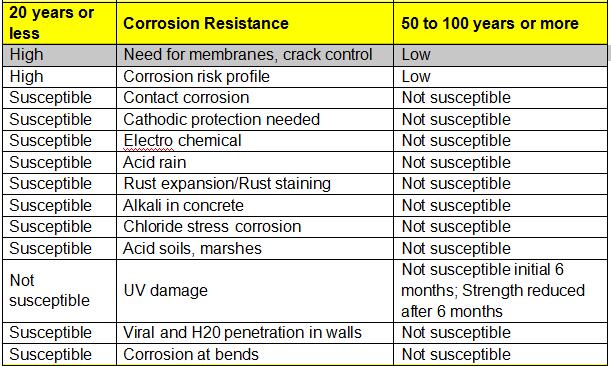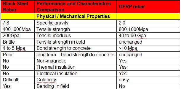Applications Requiring Low Electric Conductivity or Electro-magnetic Neutrality-Using steel bars in applications where low electric conductivity or electromagnetic neutrality is needed often result in complex construction layouts, if such use is possible at all. Potential applications are: aluminum/copper smelting plants; manholes for electrical and telephone communication equipment; structures supporting electronic equipment
