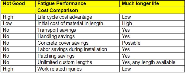 Applications in Weight Sensitivity or Thermally Sensitivity Structures: Concrete construction in areas of poor load bearing soil conditions, remote geographical locations, sensitive environmental areas, Apartment patio decks; thermally insulated concrete housing and basements; thermally heated floors and conditioning rooms, or active seismic sites posing special issues that the use of lightweight reinforcement will solve.